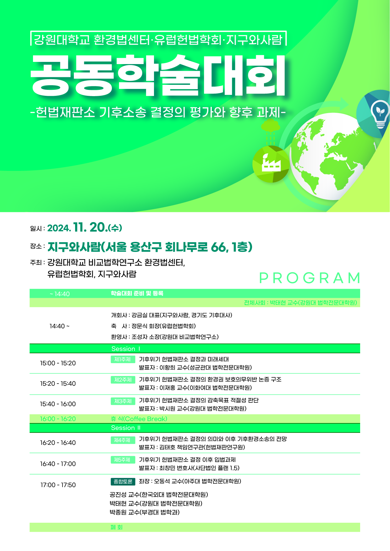 [학술대회 포스터] 헌법재판소 기후소송 결정의 평가와 향후 과제(2024.11.20).jpg